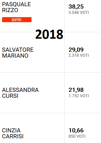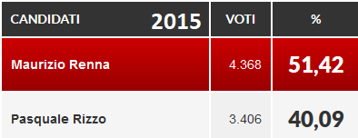 Venne poi il 2015. Una campagna elettorale non proprio efficiente ed una scelta largamente opinabile della “base” non regalò a Rizzo il risultato sperato. Abitanti 13.994 per 12mila811 elettori, l’avvocato guadagnò il 40% (3.406 voti). Maurizio Renna (chi?), forte dell’appoggio granitico del Partito Democratico a trazione “romana” raggiunse il 51.42% (4.368 voti). Ecco, se proprio si deve parlare di “plebiscito” sarebbe più giusto portare questo esempio. Non certo l’ultimo risultato.